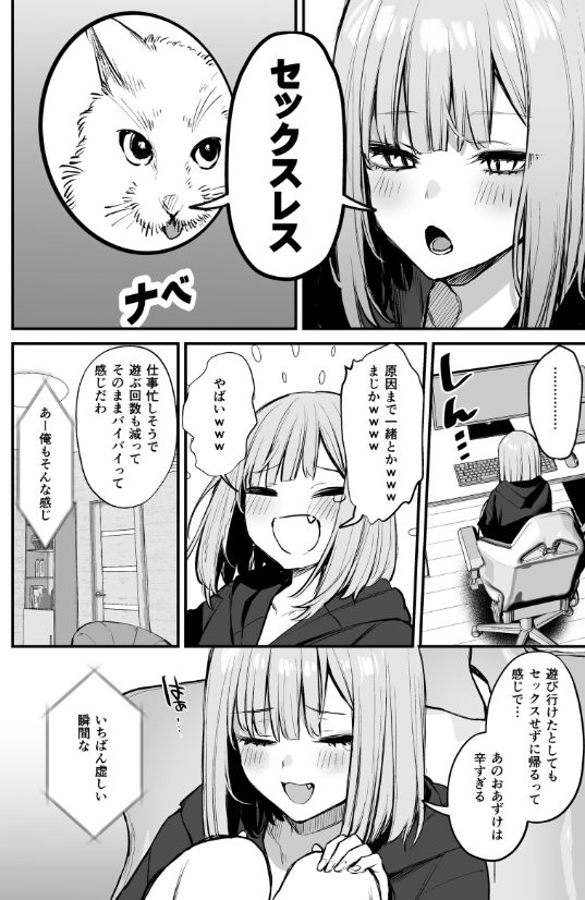 1巻では、ネトゲ友達・ナベ君との雑談から「セックスレス」で恋人と別れたことを知り、長年の欲求不満が爆発。